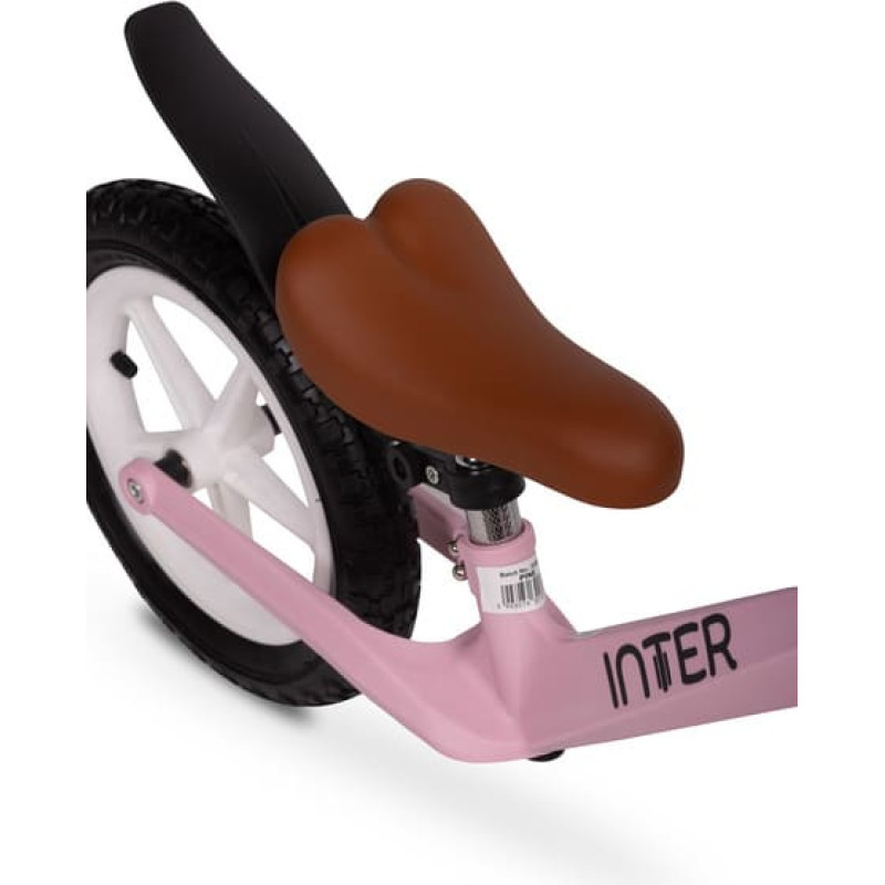 Balance bike Inter for children aged 3-6 years This charming balance bike is an excellent choice for children starting their biking adventures. It is designed with the child's comfort and safety in mind, and its aesthetics are delightful, featuring pastel colors that add a unique charm. Details in shades of brown enhance its elegance and provide a classic touch.