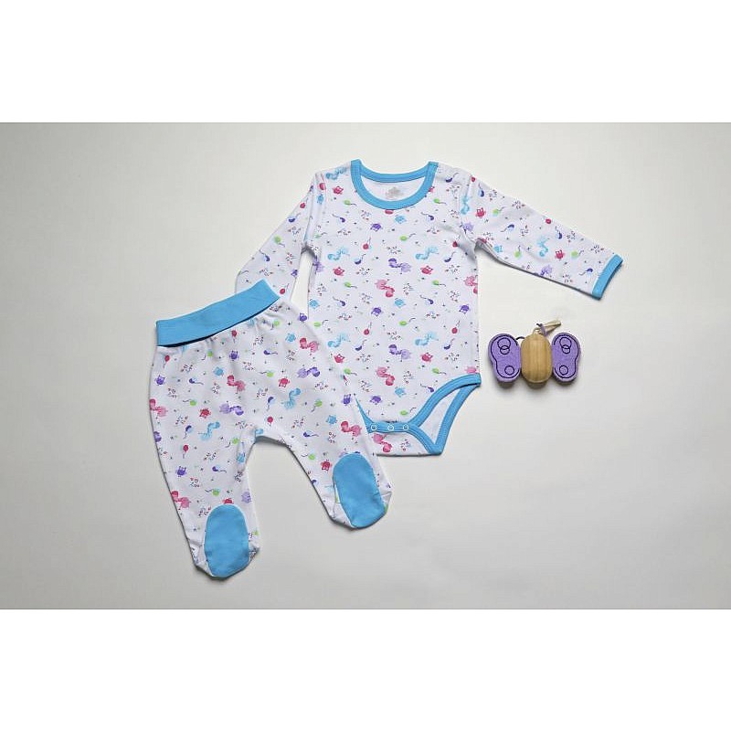 Romper suit with the unusual drawing, without fasteners. Soft and pleasant material. Material: 100% cotton.