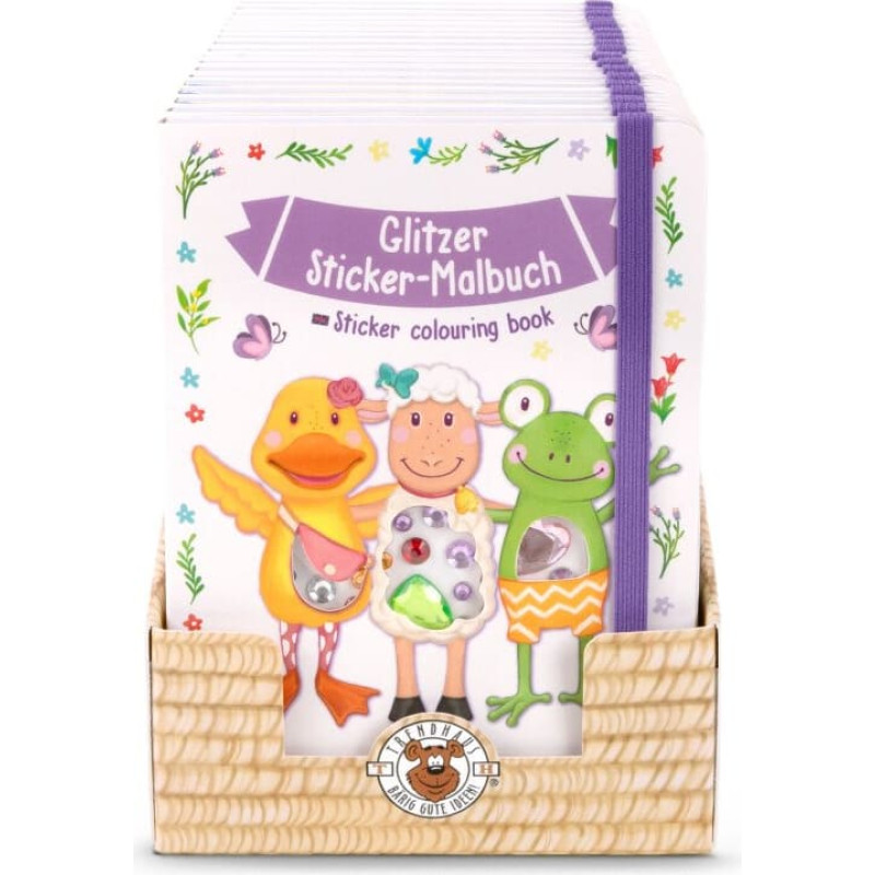 Enchanting, lovingly drawn motifs await colourful paint and effective stickers! Contents: 20 pages full of colouring pictures to colour in with pre-coloured glitter areas, 4 pages with a total of 90 stickers in metallic and glitter effect as well as writable stickers, 1 page with 96 diamond stickers. Includes elastic band fastener. Warning! Not suitable for children under 36 months. Small parts. Choking hazard. Adult supervision advisable. Please keep this warning! Made in China.