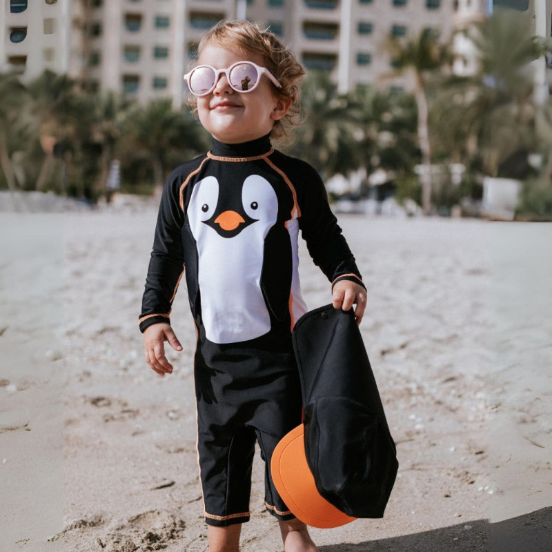 Designed with bright, eye-catching colors, My Little Swimsuit ensures your toddler is easily visible in and out of the water. Safety and style go hand-in-hand for worry-free summer fun. This swimsuit comes with a peaked hat to reduce glare and provide extra comfort for your little one. This thoughtful feature helps protect their eyes from the sun, making outdoor play more enjoyable. The hat attaches to the swimsuit with snap fasteners. A high neck design, an extended neck flap. The swimsuit has a convenient zipper closure at the back. It is lightweight, quick-drying, and easy to clean, making it perfect for beach outings and pool adventures. My Little Swimsuit offers UPF50+ protection, blocking 98% of harmful UV rays. Keep your child’s skin safe during all their outdoor adventures with this reliable and sun-smart swimwear. Choose the right size by your child's measurements! | Size | Height, cm | Hips, cm | Waist, cm | Chest, cm | | 18-24 months | 92 | 50 | 48 | 52 | | 2-3 years | 98 | 52 | 50 | 54 | | 3-4 years | 104 | 54 | 52 | 56 |
