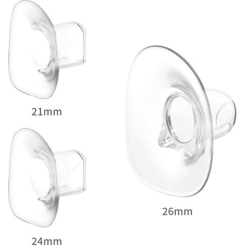 3 interchangeable funnels Did you know that it is not the size of the breasts, but the size of the nipple that determines whether the breast pump will be well-chosen? By choosing the MEGAN breast pump, you can be almost 100% sure that it will be perfect for you. Why? We have equipped the set with 3 funnel sizes: basic - 26 mm (built into the breast pump) and 2 interchangeable inserts - funnels in sizes 21 mm and 24 mm. This will help you choose the right size of the funnel for your nipple.