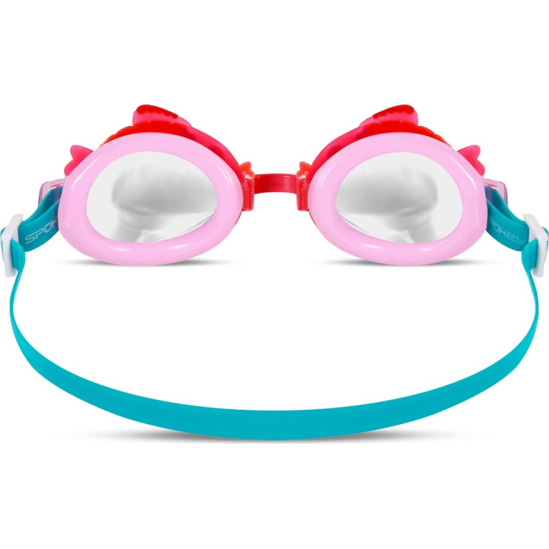 Children’s swimming goggles with a colorful, cartoon-themed design will catch the eye of all young water enthusiasts. Additionally, the lenses are coated with a UV protection filter, making the goggles suitable for use in outdoor pools as well. Thanks to the flexible gaskets, the goggles fit snugly to the face, preventing water from entering, while the adjustable strap ensures a perfect fit to the head size and makes them easy to put on.   Parameters lenses: PC (Polycarbonate) with UV protection clear lens gasket: PVC strap: silicone, adjustable nosepiece: adjustable field of view: standard