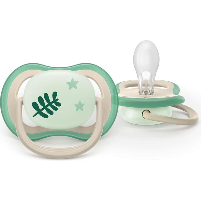 Philips Avent Ultra Air Nighttime Pacifier - Lets your baby's skin breathe Soothing and airy thanks to large vents. 9 out of 10 parents agree: Philips Avent Ultra Air pacifiers are comfortable for my little one.** They glow in the dark, making comfort and relief always easy to find. Made from 80% plant-based materials.*