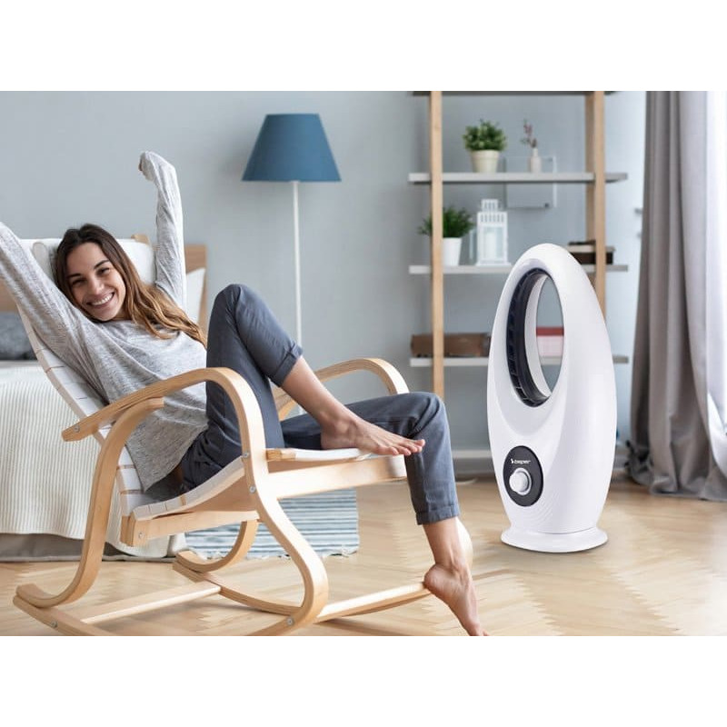 Floor fan with modern design, engineered with innovative bladeless technology for better and more effective airflow distribution throughout the room. Increased safety for the whole family thanks to the absence of blades. Silent, oscillating and with 3 ventilation speeds. Constant and more powerful air flow than standard fans. Comfortable stand that makes it stable.