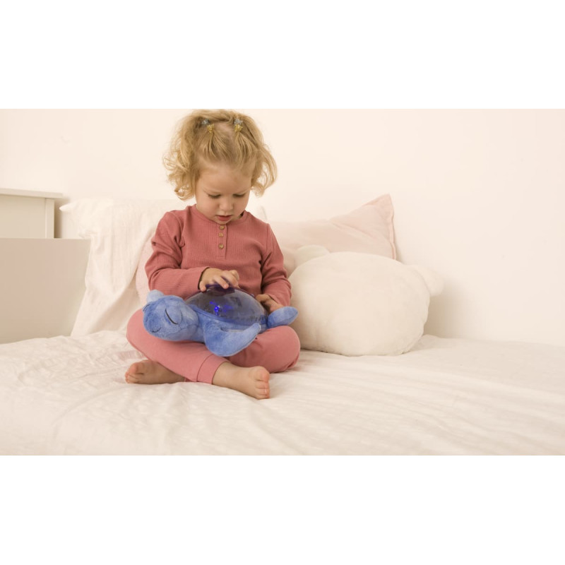 Introducing the Tranquil Turtle™ - Ocean: The Ultimate Sleep Companion and Nightlight Looking for the perfect solution to soothe your baby from birth or help your child overcome their fear of the dark? Look no further than the Tranquil Turtle™ - Ocean. This adorable turtle not only doubles as a soft plush companion during the day but also transforms into a magical nightlight at night, creating a serene sleep environment for your little one. With its unique, patented mechanism, the Tranquil Turtle™ emits a gentle glow that illuminates the room with a soft light. But that's not all - it also projects captivating ocean waves onto the bedroom ceiling, bringing the beauty of the underwater world right into your child's room. The constantly moving waves create a mesmerizing underwater light effect that will captivate their imagination. To further enhance the soothing experience, you can choose between a calming melody or the sound of waves (white noise). These two soothing sounds provide a tranquil atmosphere to help your baby or child drift off into a peaceful slumber. With six adjustable volume levels, you can easily customize the sound to suit your child's preferences. One of the standout features of the Tranquil Turtle™ is its 23-minute timer. This timer ensures complete darkness and silence after your child falls asleep, allowing them to rest undisturbed throughout the night. Say goodbye to worrying about keeping the nightlight on for too long or sneaking back into the room to turn it off. Not only does the Tranquil Turtle™ provide comfort and relaxation, but it also offers practicality. The brightness of the light is fully adjustable, allowing you to create the perfect sleep environment according to your child's needs. Whether they prefer a dim glow or a slightly brighter ambiance, you can easily set it up just the way they like it. In summary, the Tranquil Turtle™ - Ocean is a delightful sleep companion that brings together the elements of comfort, tranquility, and enchantment. Its soft plush exterior offers companionship during the day, while its magical nightlight and soothing sounds create a serene atmosphere for a good night's sleep. Embrace the wonders of the underwater world and ensure your child's peaceful slumber with the Tranquil Turtle™ - Ocean.