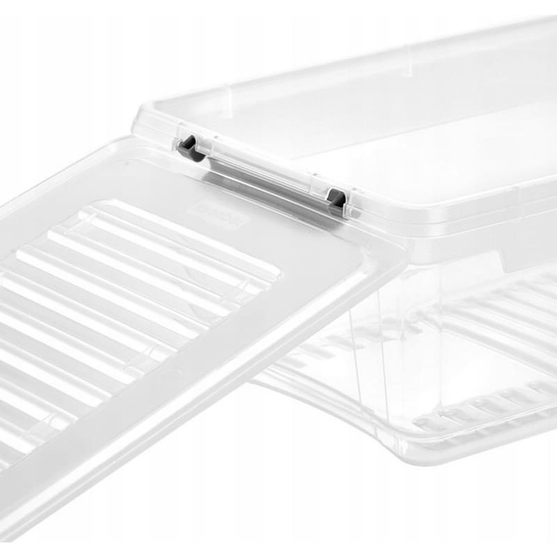 Leonie Clipbox sērijas konteineri ir ideāli piemēroti apģērbu, rotaļlietu un mājas piederumu glabāšanai. Konteineri droši sakraujas, pateicoties speciāli profilētajai vāka malai. Caurspīdīgās sienas ļauj ērti pārskatīt saturu. Konteineri ir izgatavoti no augstas kvalitātes plastmasas (PP), ko ir viegli tīrīt un kopt. Droša aizdare, pateicoties izturīgajam vākam ar klipšiem, nodrošina, ka saturs paliek droši noslēgts. Klipši darbojas arī kā eņģes.