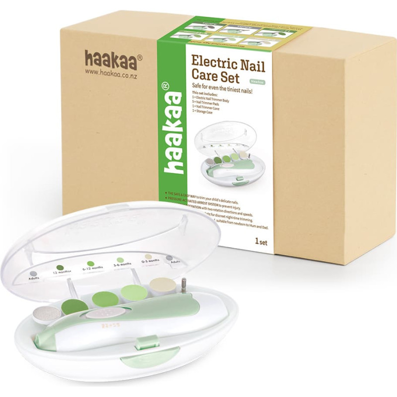 Haakaa Baby Nail Care Set komplekts — droša elektriskā nagu vīlīte (Pļavu zaļš)