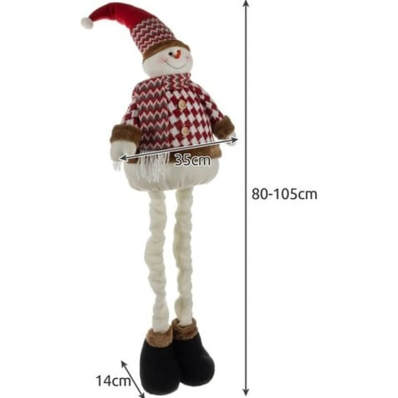 Uz īsām kājām stāvošas figūriņas augstums ir 80 cm, bet ar izstieptām kājām - līdz 105 cm! Turklāt cepuri var arī modelēt, jo tajā ievietota tieva stieple.Sniegavīrs būs brīnišķīgs papildinājums jebkurai Jaungada dekorēšanai. Tas lieliski izskatīsies pie kamīna, zem skaisti izrotātas eglītes, uz loga vai uz kumodes. Novietojiet šo figūriņu gaitenī vai viesistabā, lai tā viesus sagaidītu ar priecīgu smaidu. Tas ir lieliski piemērots arī bērnudārziem, skolu klasēm un ārstu kabinetiem. Visur, kur tas sagādā prieku ar savu izskatu. Šis jaukais sniegavīrs ir apveltīts ar maģiskām īpašībām, kas ienesīs svētku atmosfēru jebkurā interjerā.