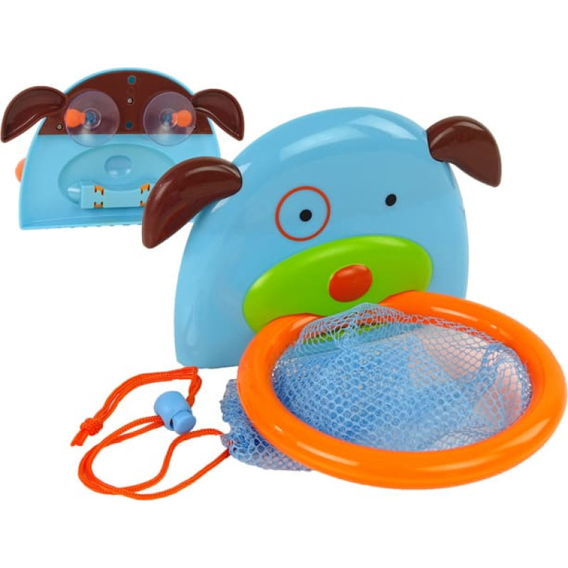 Vai jūsu mazulim nepatīk peldēšanās? Padarīsim šo procesu jautrāk! Mini basketbols ar draudzīgu suņa tēlu palīdzēs jūsu mazajam vannošanās laiku saistīt ar kaut ko patīkamu un padarīs to jautru. Metot gumijas bumbas-zivtiņas, viņš var attīstīt roku-acu koordināciju, koncentrēšanos un roku prasmes. Tīklam ir rāvējslēdzējs, tāpēc grozu var izmantot arī kā rotaļlietu turētāju vannas istabā. Rotaļlietu ātra žāvēšana novērsīs pelējuma veidošanos. Abi komplektācijā iekļautie piesūcekņi lieliski pielīp gludām virsmām, tāpēc tos var piestiprināt pie flīzēm vai stikla. Četrām zivīm ir mazi caurumi, kas ļauj iekļūt ūdenī, un, nospiežot rotaļlietu, ūdens izšļakstās smieklīgā veidā, kas noteikti liks jūsu bērnam smieties.