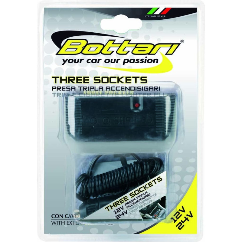 Bottari Triple socket with extendible cable 12V/24V "THREE SOCKETS"