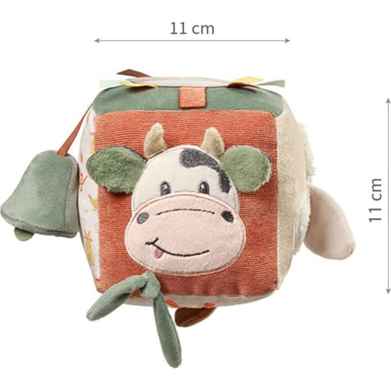 Mūsu plīša "Gotiņa Bingo" sensoriskais kubs ir rotaļlieta mazuļiem, kas ir pilna pārsteigumu, stimulē iztēli, iesaista maņas un palīdz attīstīt bērna manuālās prasmes.