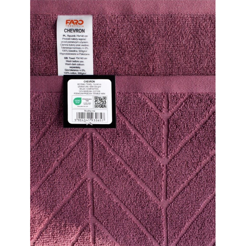 RĘCZNIK CHEVRON 70X140 BRUDNY RÓŻ BAW. 500G.
