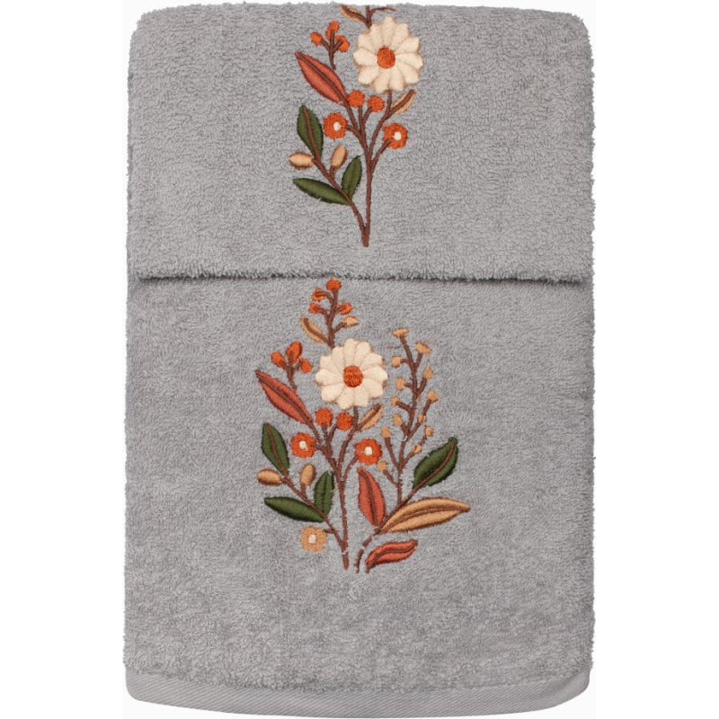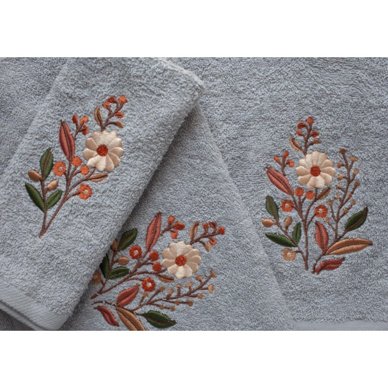 RĘCZNIK KPL.MARIBELLA 3 SZT./30X50/50X100/70X140/ FROTTE HAFT 001 KWIATKI JASNY SZARY