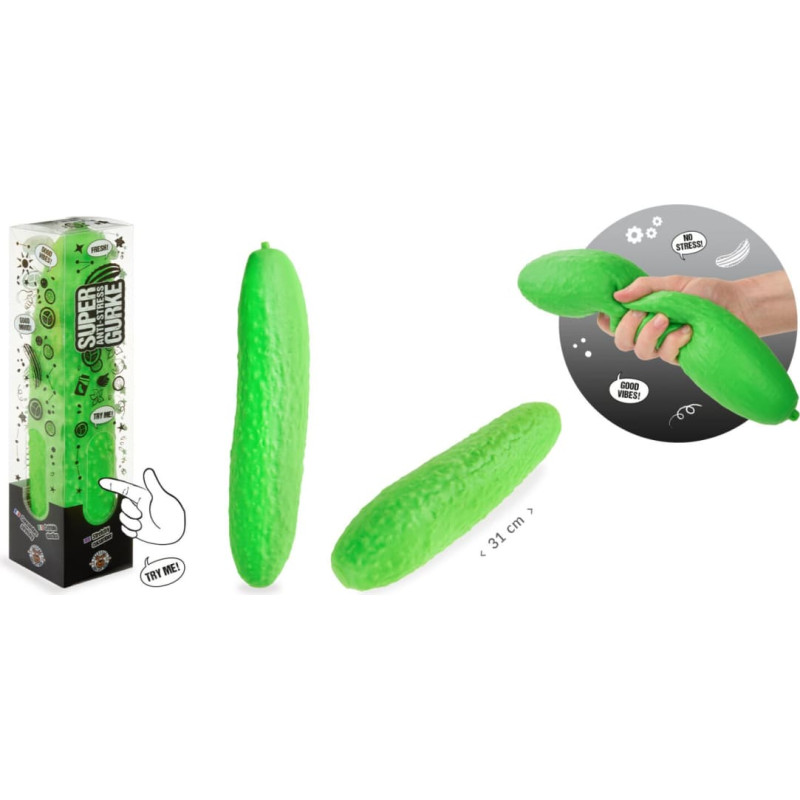 This XXL anti-stress cucumber is the perfect fun and relaxation gadget for in between times. With its pleasant soft-touch feel and surface texture, this cucumber is perfect as a distraction in between times, for playing or simply for relieving stress. Includes gift packaging with feel hole. Filling: PVA powder, outer material: TPR. Size: approx. 31 x 6 x 5.5 cm. Warning! Not suitable for children under 36 months. Small parts. Choking hazard. Adult supervision advisable. Please keep this warning! Made in China.