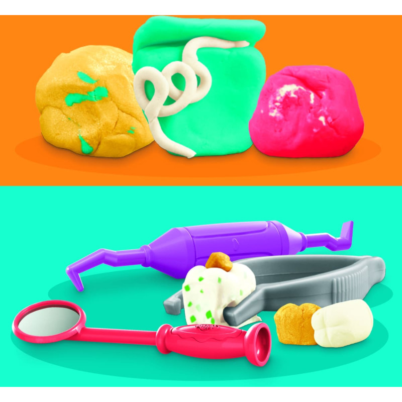 Open the world of creativity with Play-Doh! Doctor Drill ´n Fill is back, with more cavities than ever! With "cavity" confetti compound, gold and silver for braces and fillings, and a new battery-free spinning drill, playing dentist just got even better. We redesigned the tooth mold to make an entire row of teeth at once, and it comes with all the classic dentist tools for fun role play. Make him stick out his tongue, extrude toothpaste, and don´t forget to floss!