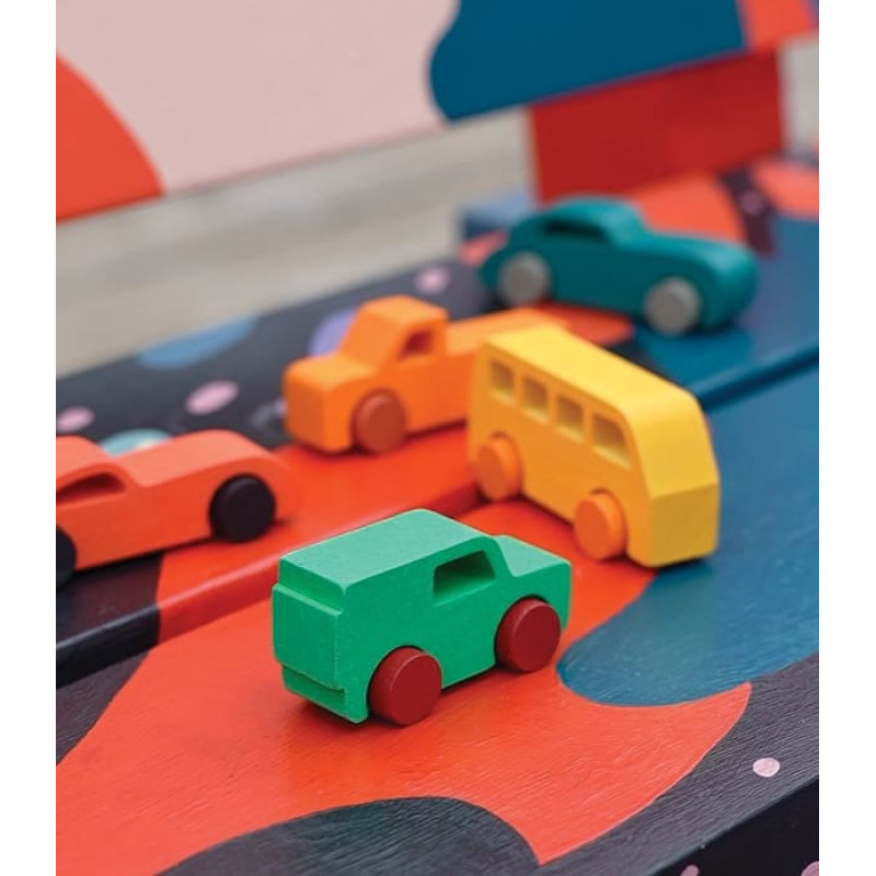 Plastic-Free, wooden toy vehicles with wooden wheels and cut out windows. For all your transport and car adventures. Set includes 5 wooden cars with wheels and cut out windows. Toy size 21 x 12 x 5 cm. Packaging size 21 x 12 x 5.4 cm. Crafted from rubber wood, a by-product of the latex industry, making clever use of resources that might otherwise go to waste and taking a small but impactful step in caring for our environment. Reccomended for ages 18 months and up. Product bears the CE marking. Made in Indonesia, Created by Cyrus International Co. Ltd, Mentari, USA.